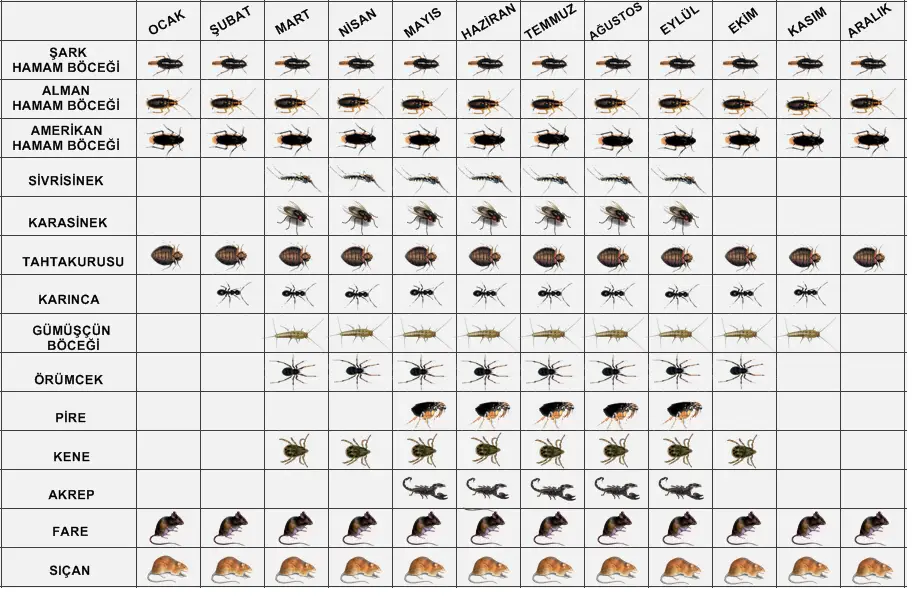 Haşereler ve kemirgenler belli dönemlerde yumurtalar bırıp, üreyip çoğalırlar. Bu takvim fikir vermek amacıyla hazırlanmıştır.